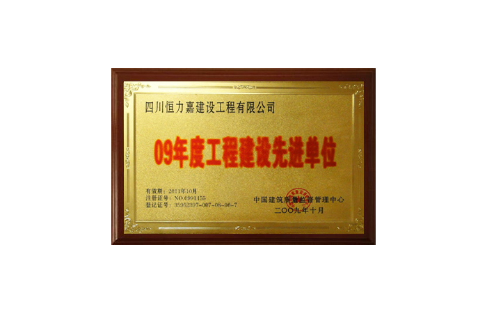 • 2009年10月工程建設(shè)先進(jìn)單位...
