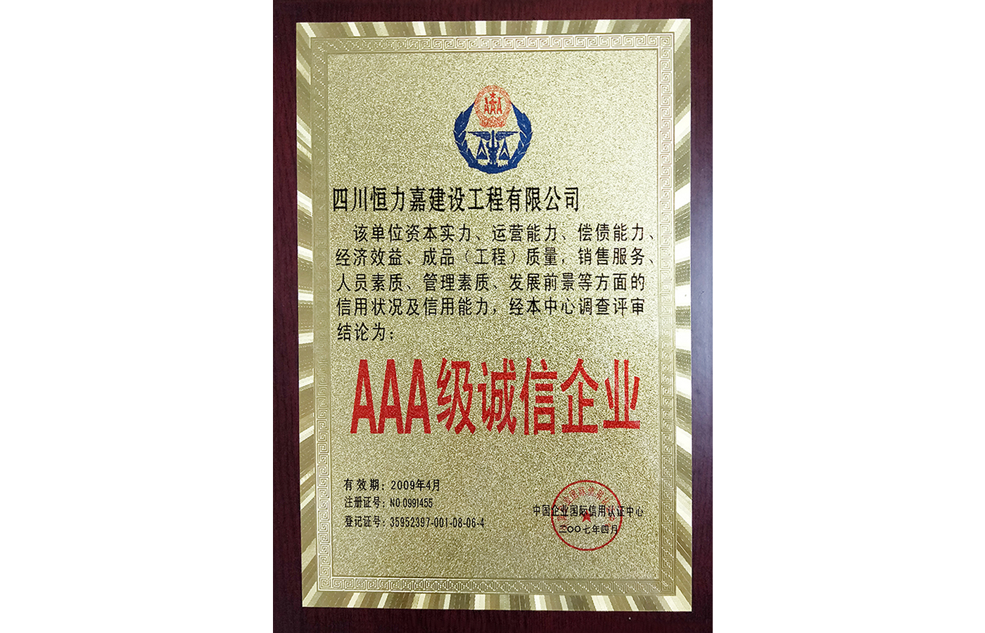 • 2009年10月AAA級(jí)誠(chéng)信企業(yè)